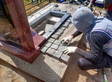 Начинаем собирать гранитное надгробье, предварительно выставив цветник.