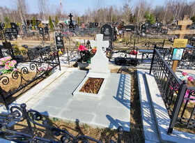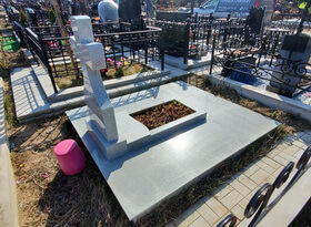 В ходе уборки мы: навели порядок в цветнике, удалили отцветшие растения и освободили место для растущих; тщательно промыли памятник, борта цветника, а также гранитный пол места захоронения. Дополнительно мы предложили клиентке открасить надписи на надгробье, однако от этой услуги заказчица отказалась.